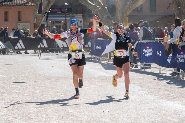 La fin de parcours rejoint celle du trail long. Notre équipe d’assistance revient à Bédoin pour accueillir les coureurs. Quelques visages et genoux ensanglantés aperçus à l'arrivée témoignent de la rudesse du parcours.
