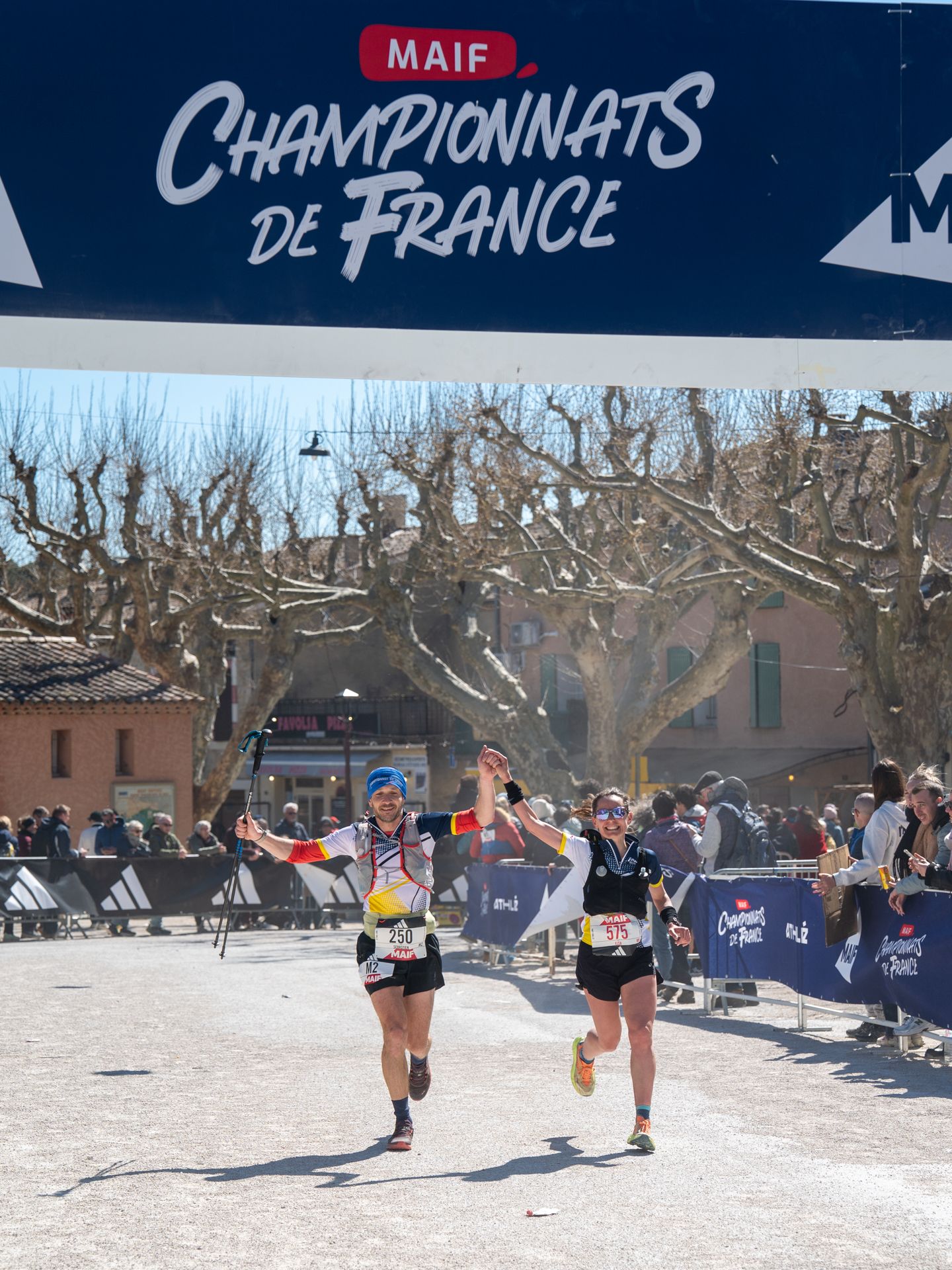 La fin de parcours rejoint celle du trail long. Notre équipe d’assistance revient à Bédoin pour accueillir les coureurs. Quelques visages et genoux ensanglantés aperçus à l'arrivée témoignent de la rudesse du parcours.